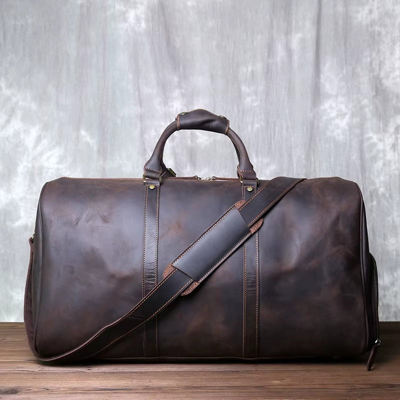 Stilren Weekendväska i Crazy Horse Läder – För Resor med Klass